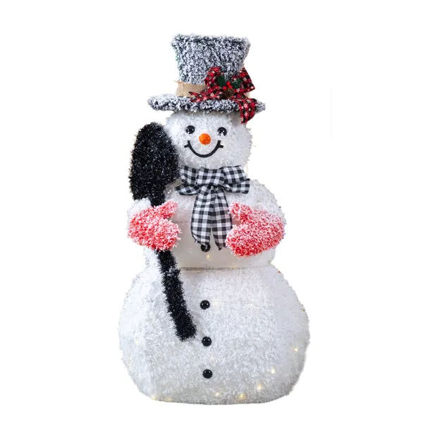 3FT Lighted Snowman Holding Spade Christmas Decorations, Pre-lit Holiday Decor With 110 Warm White LED Lights For Xmas Outdoor Indoor Decor Lighted Holiday Displays